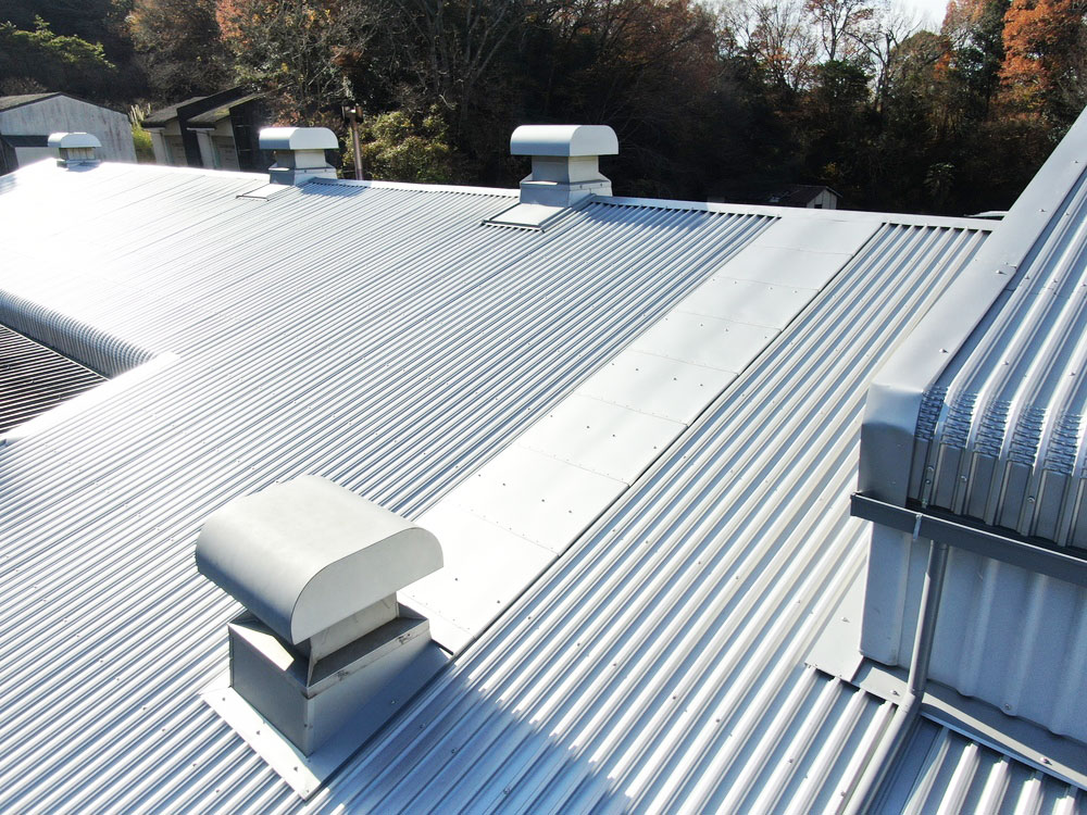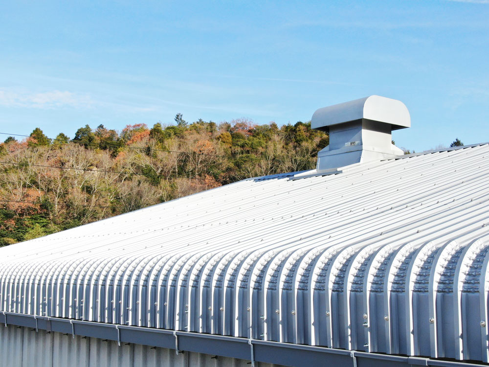 既存の屋根に新しい屋根材(エバールーフ やまなみ1型)を重ねるカバー工法にて施工。塗装よりも耐久性に優れており、長期間にわたってメンテナンスの負担を軽減できます。さらに、その下に遮熱シート(サーモバリア スリム)を敷いたことで、高い遮熱性能を得ました。