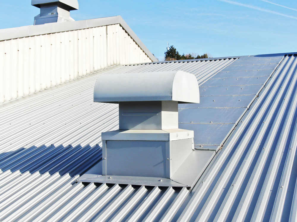 軒先のラジアル(R形状)もしっかりカバーすることで美しい仕上がりになりました。ケラバ、壁際、棟部も同素材のガルバリウム鋼板で施工しました。変形していた雨樋は新品に交換し、雨漏りの原因だった排気塔まわりの雨仕舞いはカバールーフでしっかりと解決。雨漏りの心配もなくなりました。