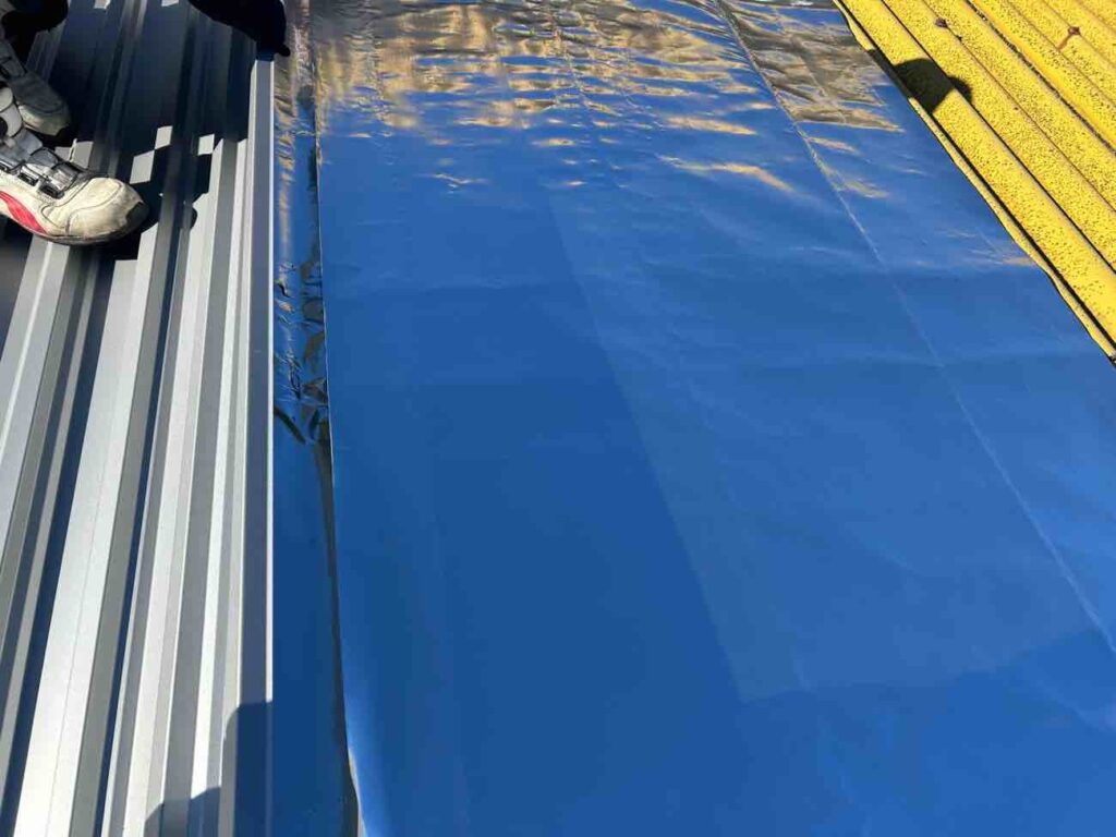 まず、劣化した既存の屋根の上に遮熱シート『サーモバリア スリム』を丁寧に設置しました。